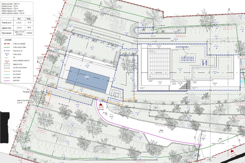 It allows for the construction of a villa and a pool house with a total floor area of 432 m², and a 12 m x 4 m swimming pool.