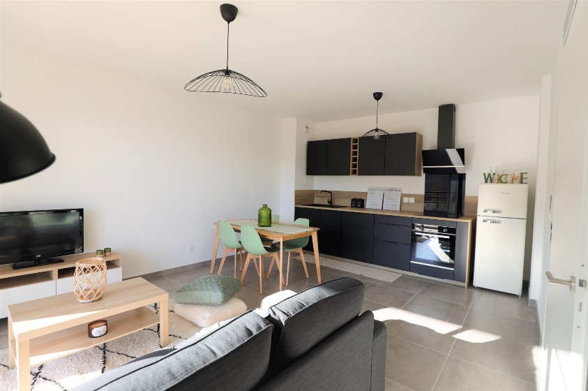 Charmant 2 pièces dans une résidence récente, avec de belles prestations situé à proximité de l'école et tennis club.L'appartement est composé d'une entrée, un séjour avec cuisine ouverte entièrement équipée, une chambre, une salle de douches.