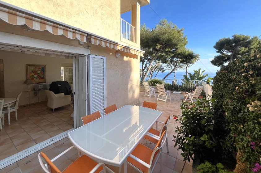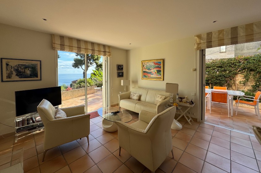 Exclusivité, Eze Bord de Mer, idéalement située à 5 minutes à pied de la plage, cette charmante maison individuelle d environ 110m² de superficie habitable, bâtie sur un terrain de 413 m², offre une superbe vue mer dans un cadre verdoyant et résidentiel.Facile d'accès, elle dispose d'un grand garage au niveau de la route et d'une cave attenante pour un total de 32 m².