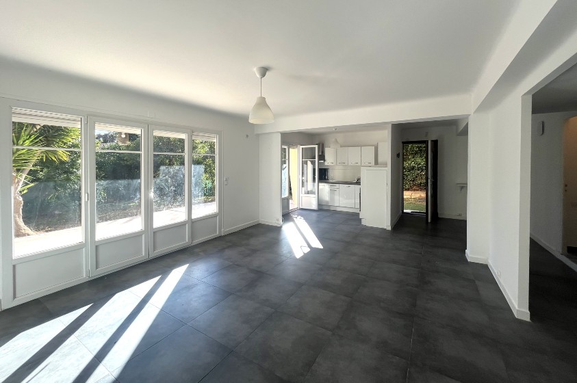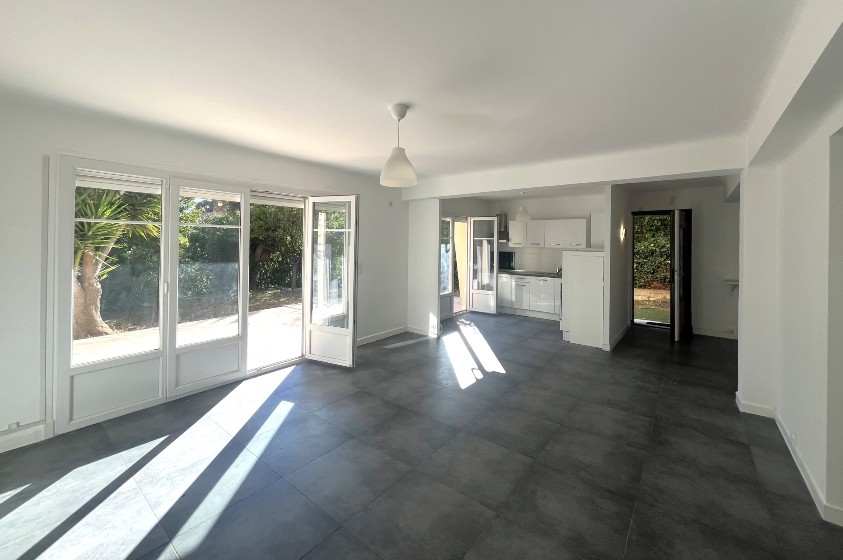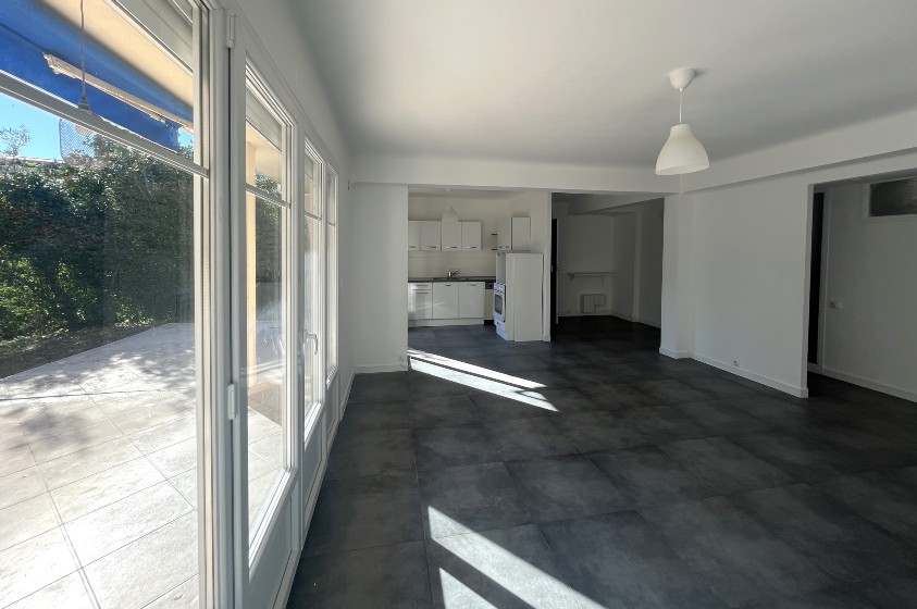 Exclusivité. Eze bord de Mer, à 5 minutes à pied de la plage, dans une petite copropriété de 3 lots d'habitation, appartement en rez de jardin de 76.29 m² loi Carrez.L'appartement est composé d'un vaste séjour avec cuisine ouverte donnant sur une terrasse de 45 m² avec un jardin à jouissance privative d'environ 150m² dans le prolongement. Il dispose d'une chambre, une salle de bains (baignoire et douche), un wc invités et une pièce supplémentaire de 8.52m² sans fenêtre. Cette pièce est reliée à la cave attenante, il pourrait être envisagé d'agrandir la chambre et d'avoir un accès sur l'extérieur.
